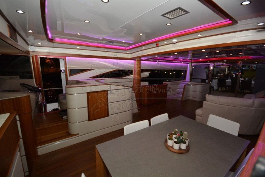 İstanbul Boğazı'nın kıyılarında seçkin misafirleri ağırlamak için tasarlanmış bu lüks yat, şirketinizin VIP davetlerini ve yönetici organizasyonlarını kalıcı anılara dönüştürür. Özel dizayn edilmiş iç mekânı, üst güverte alanı ve kişiselleştirilmiş hizmet anlayışıyla küçük ve orta ölçekli seçkin buluşmalar için biçilmiş kaftandır.