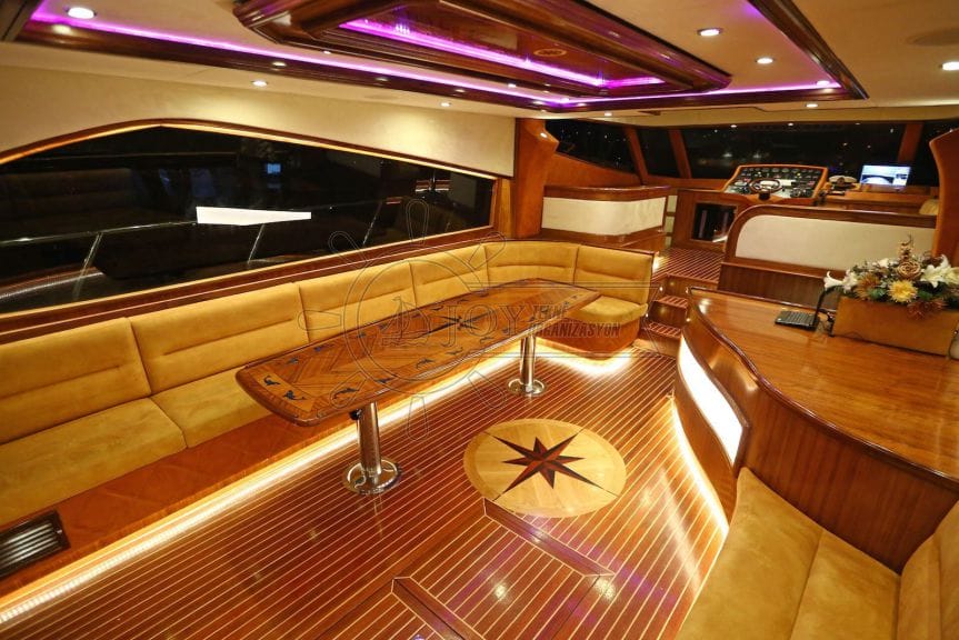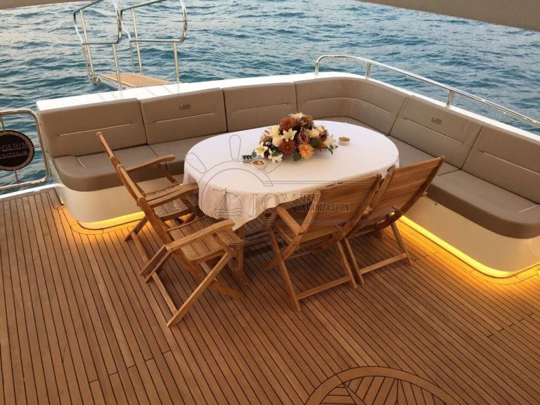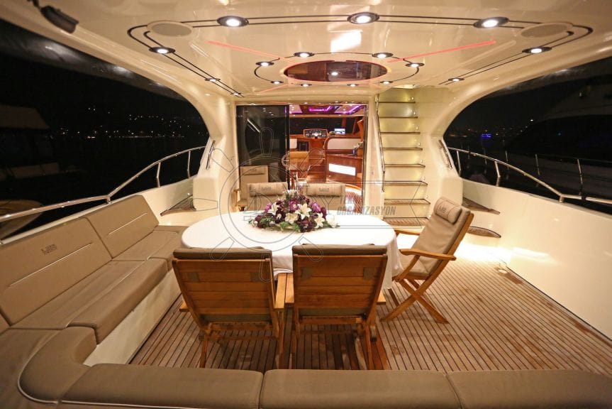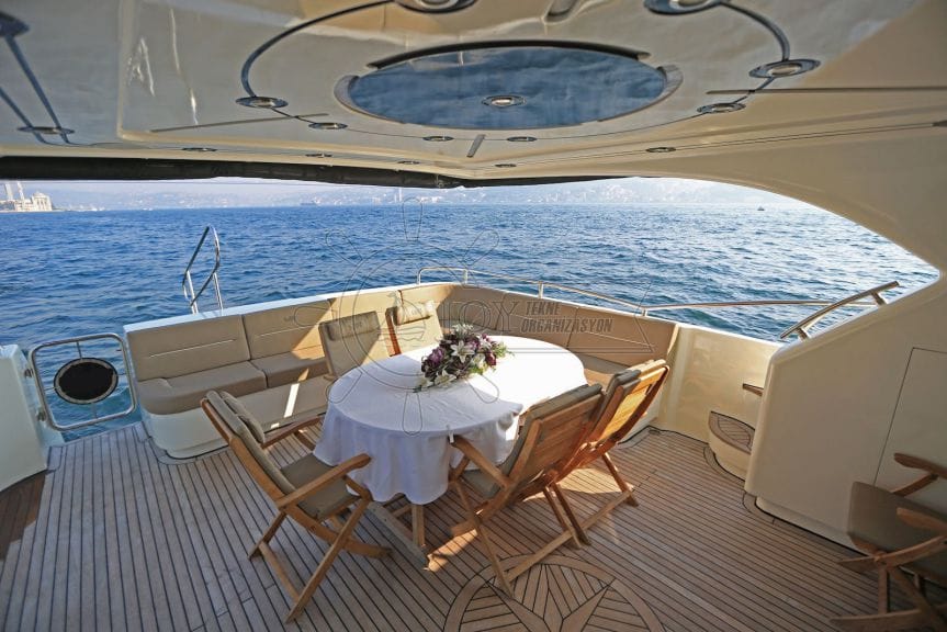 Kurumsal ilişkileri pekiştirmek ve iş ortaklarınıza ayrıcalıklı bir deneyim yaşatmak için İstanbul Boğazı'nda özel bir yemek organizasyonu bu lüks yatla hayata geçirilebilir. Sessiz motorlu tahrik sistemi, geniş oturma güvertesi ve kişiye özel ikram menüsüyle misafirlerinize unutulmaz bir Boğaz keyfini sunun.
