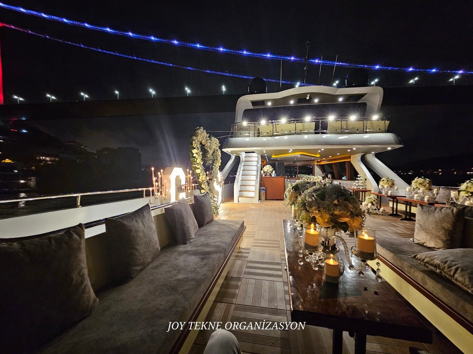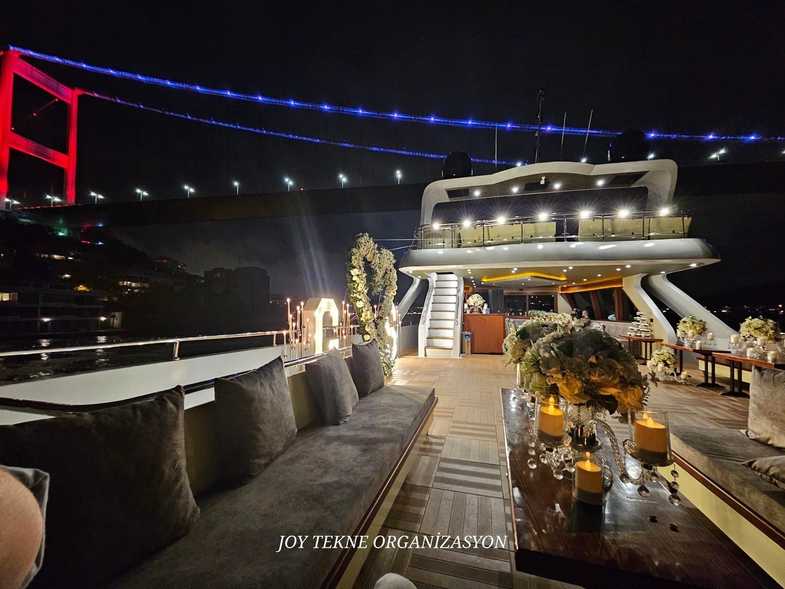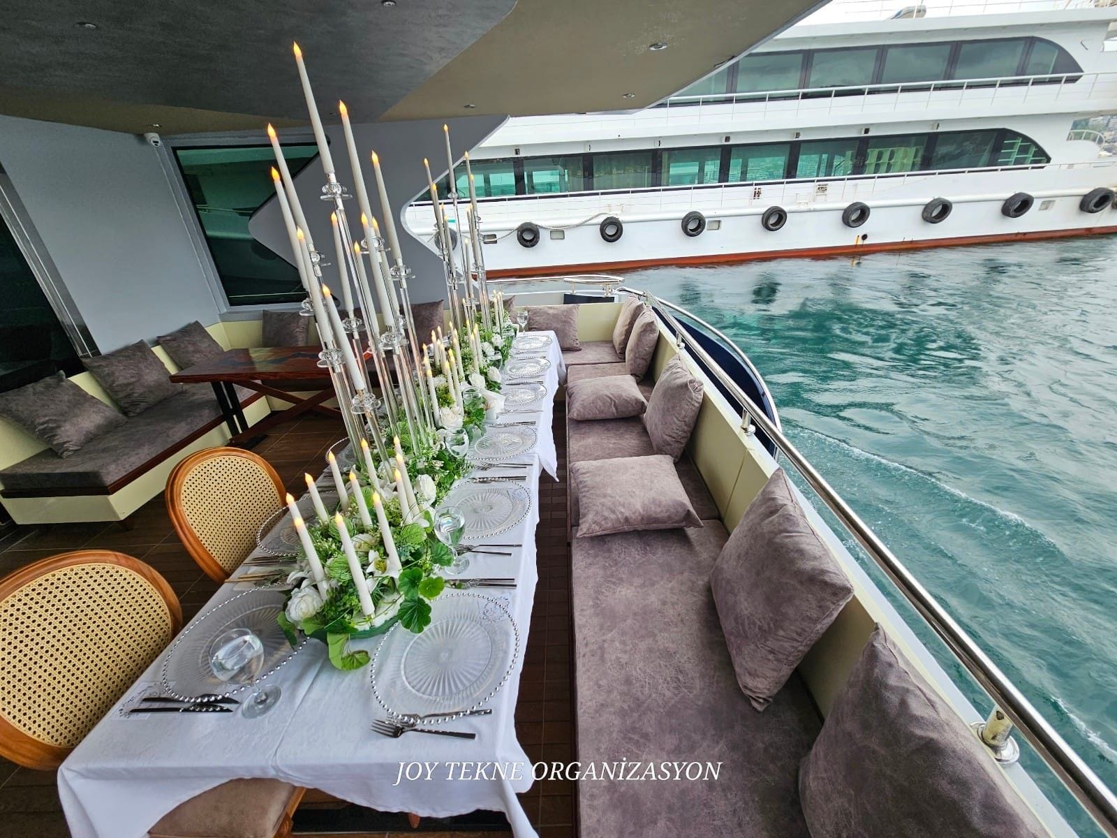 Seçkin müşterileri ağırlamak, iş ortaklarıyla ilişkileri derinleştirmek ve kurumsal itibarı güçlendirmek için İstanbul Boğazı'nda özel bir yemek organizasyonu bu tekneyle hayata geçirilebilir. Kişiselleştirilmiş ikram seçenekleri ve lojistik destek için Teknede Şirket Yemeği ekibi yanınızdadır.
