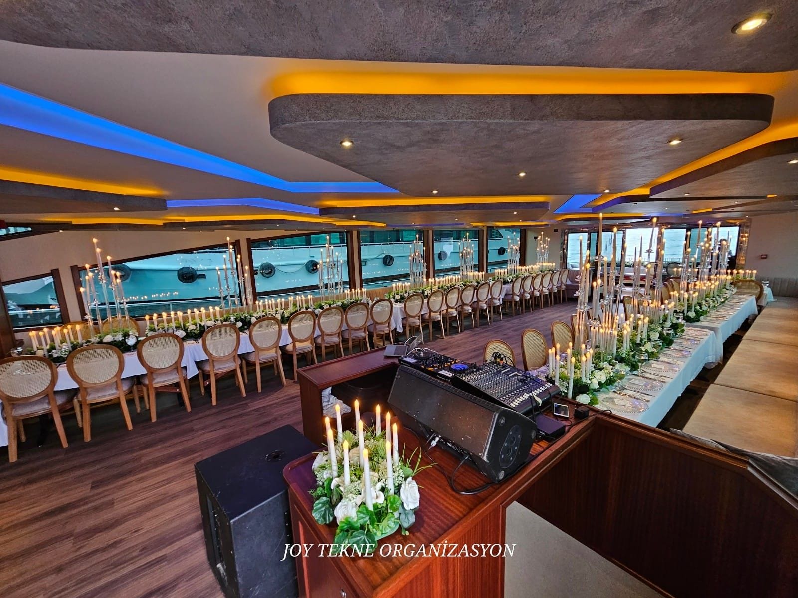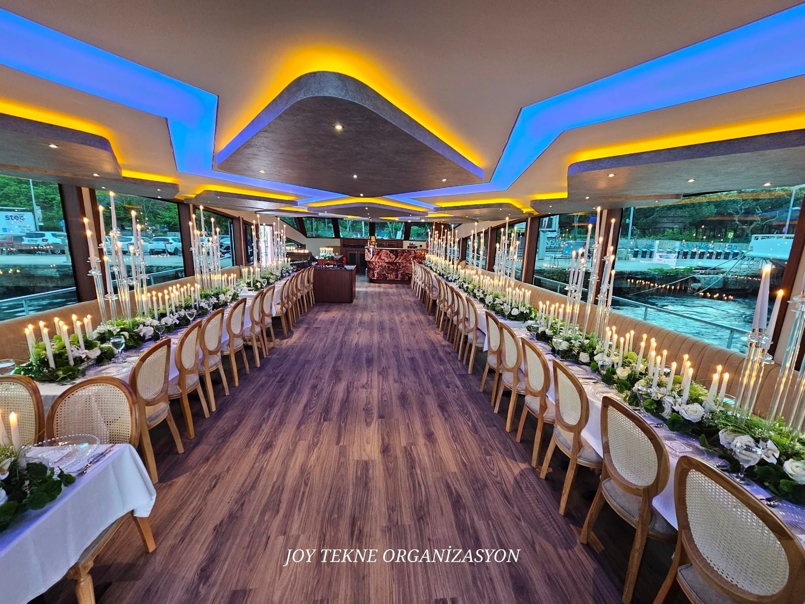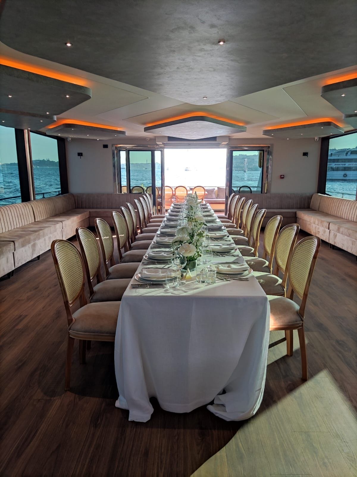 Çalışan birlik-beraberlik etkinlikleri, yeni çalışan oryantasyon buluşmaları, ekip motivasyon törenleri, stratejik iş planı toplantıları ve paydaş buluşmaları için bu tekne, İstanbul Boğazı'nın benzersiz atmosferiyle özel bir deneyim sunar. İkram ve müzik düzenlemeleri organizasyonunuzun karakterine göre kişiselleştirilebilir.