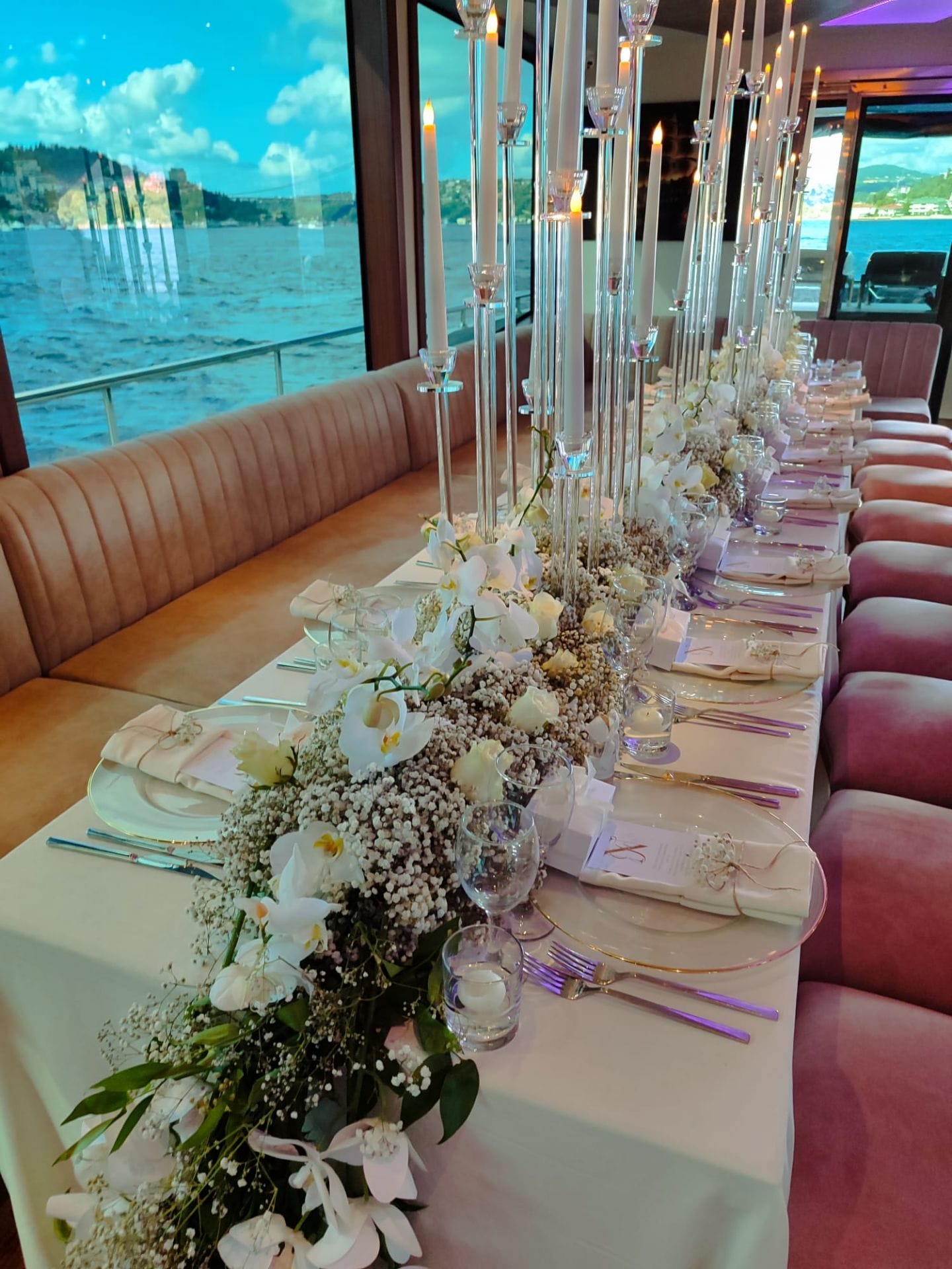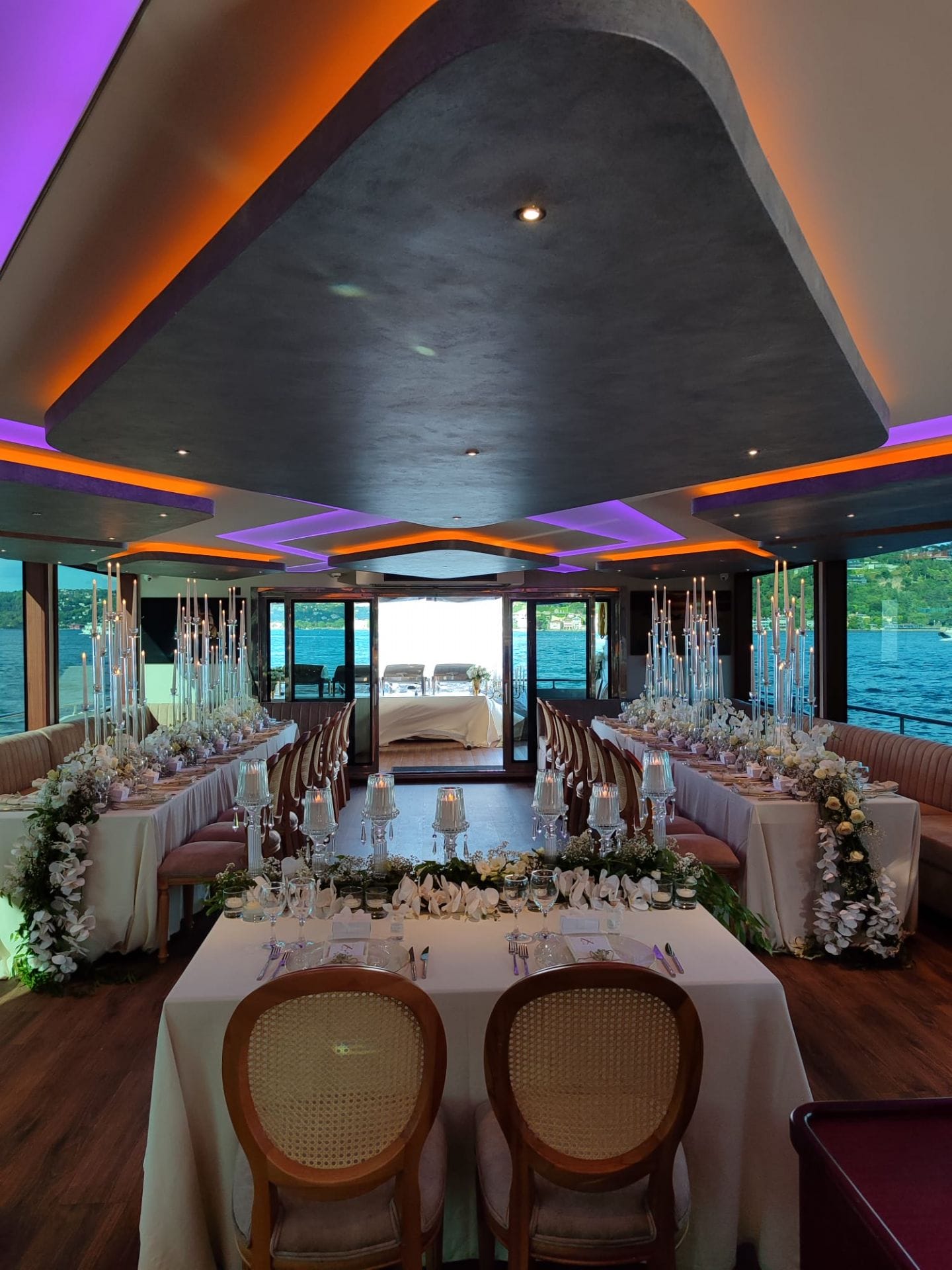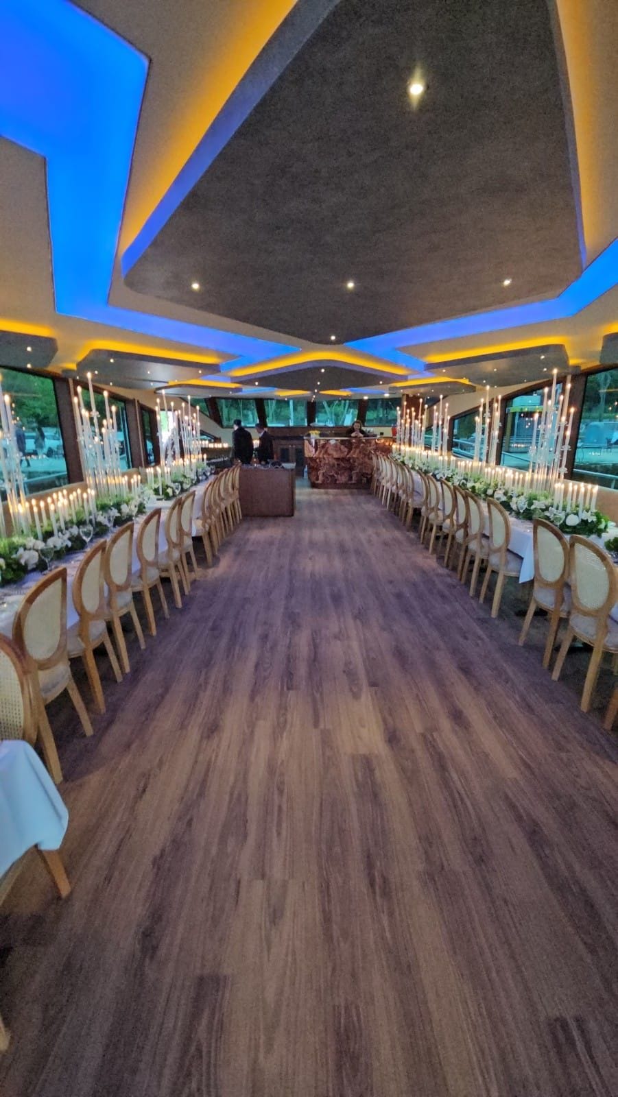 Çalışan birlik-beraberlik etkinlikleri, yeni çalışan oryantasyon buluşmaları, ekip motivasyon törenleri, stratejik iş planı toplantıları ve paydaş buluşmaları için bu tekne, İstanbul Boğazı'nın benzersiz atmosferiyle özel bir deneyim sunar. İkram ve müzik düzenlemeleri organizasyonunuzun karakterine göre kişiselleştirilebilir.
