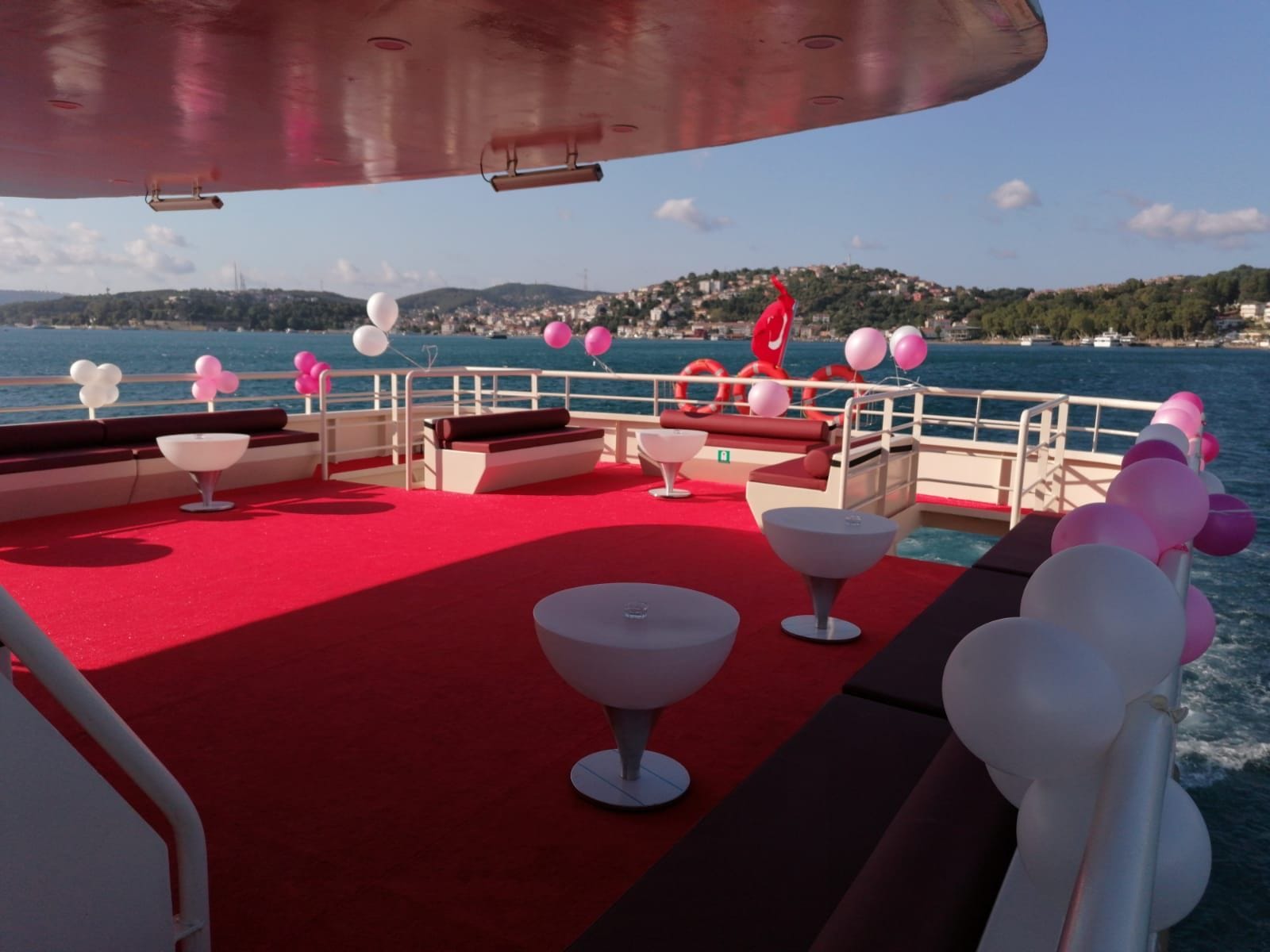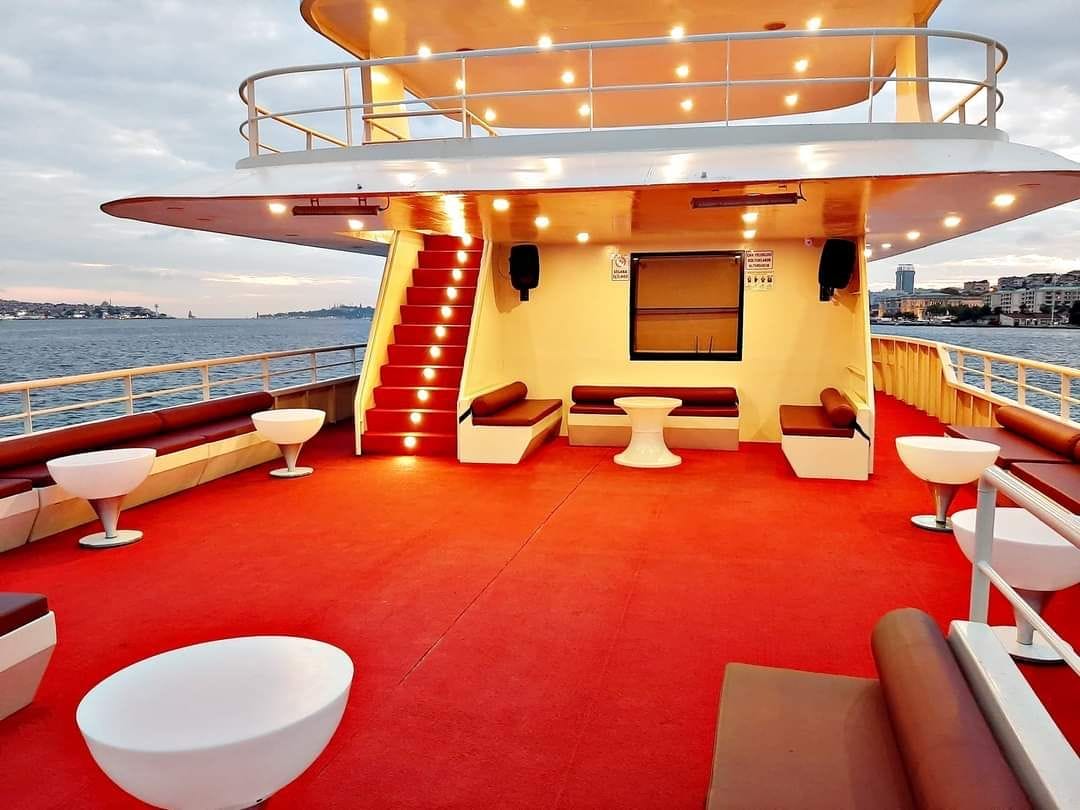 Bu tekneyi şirketinizin özel organizasyonu için rezerve etmek, kapasite ve fiyat bilgisi almak üzere Teknede Şirket Yemeği ekibiyle iletişime geçin. Yıllık deneyimimiz ve kapsamlı tekne filomuzla kurumsal etkinliğinizi İstanbul Boğazı'nda hizmetinize sunmaktan memnuniyet duyarız.