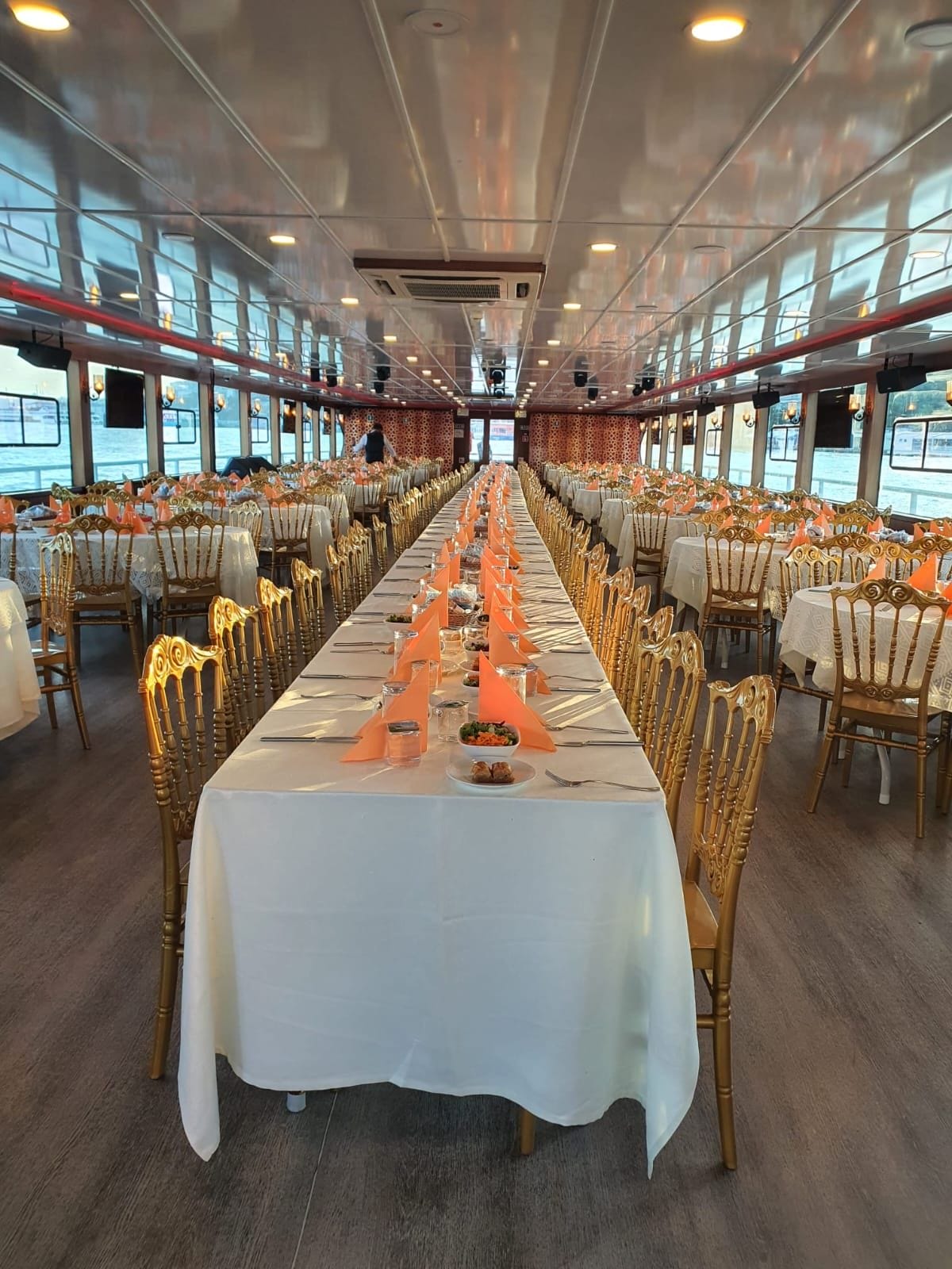 Şirket yıl sonu gala yemekleri, bayi ve distribütör toplantıları, çalışan ödül törenleri, müşteri ağırlama organizasyonları, ürün lansmanları ve marka tanıtım etkinlikleri bu teknede başarıyla düzenlenebilir. Yuvarlak masa düzeninden sahne kurulumuna, sunumlu toplantıdan ayaküstü kokteyle kadar farklı organizasyon biçimleri için alan düzenlemesi yapılabilir.