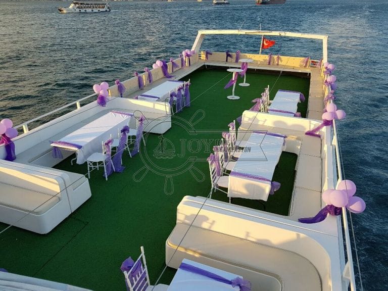 Bölge müdürleri buluşmaları, uluslararası iş ortakları ağırlama davetleri, kurumsal yıldönümü kutlamaları, ürün tanıtım ve basın etkinlikleri için tercih edilen bu tekne, maksimum esneklik ve konfor sağlar. Güverte düzeni katılımcı sayısına ve etkinlik tipine göre önceden planlanabilir.