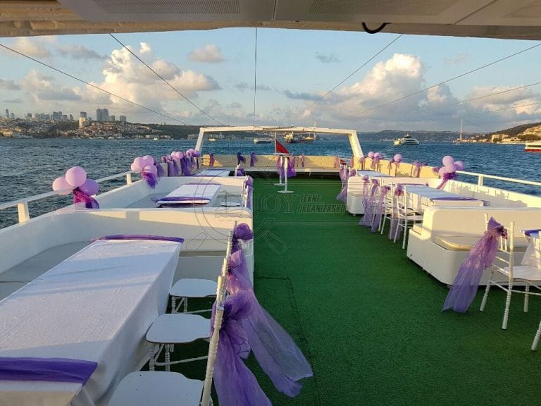 Yıl sonu şirket partisi, çalışan takdir töreni ve kurumsal kutlamalar için mükemmel bir mekân olan bu tekne; İstanbul Boğazı'nın gece ışıkları eşliğinde eşi benzeri olmayan bir deneyim sunar. Canlı müzik, özel menü ve görkemli Boğaz manzarasıyla yılın en özel gecesini çalışanlarınız için tasarlayın.