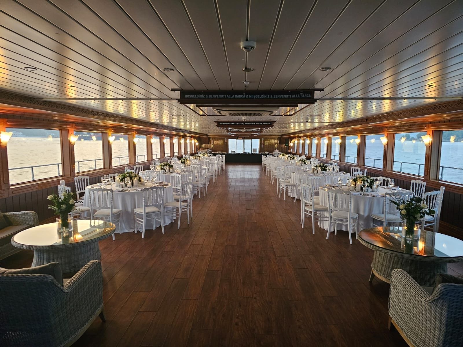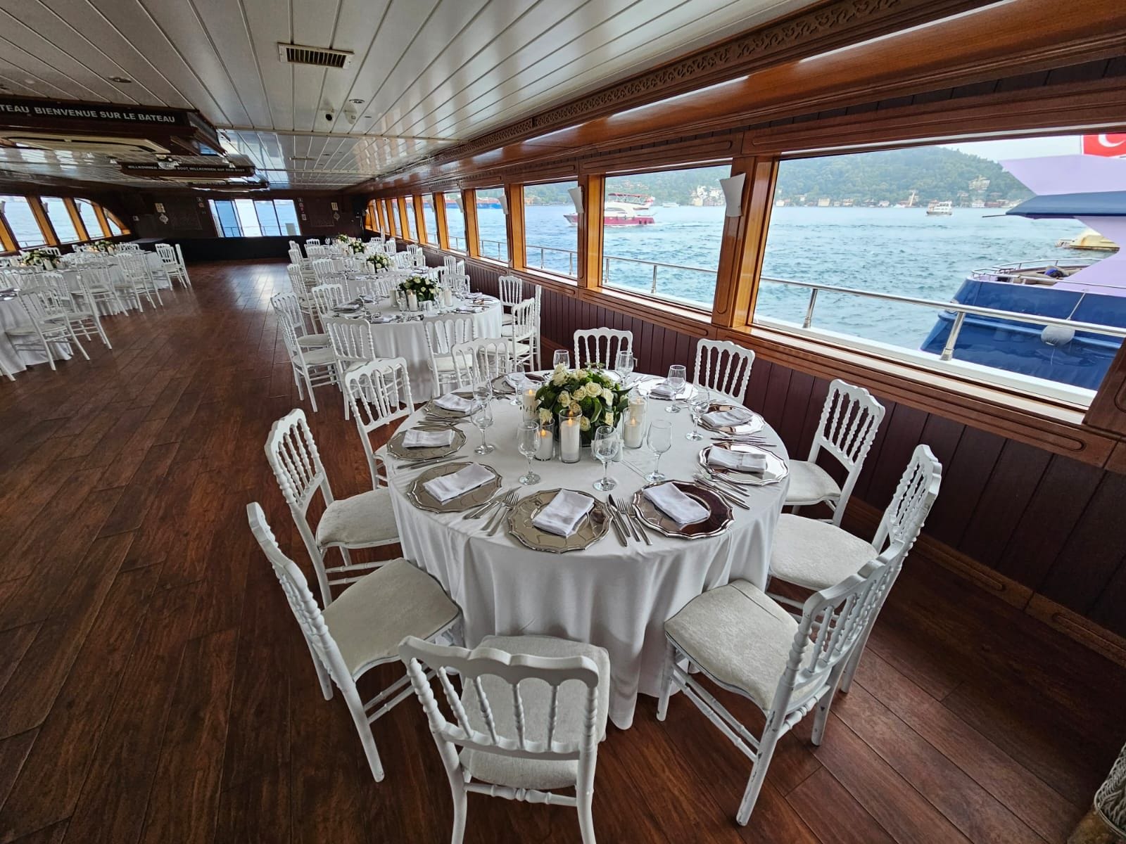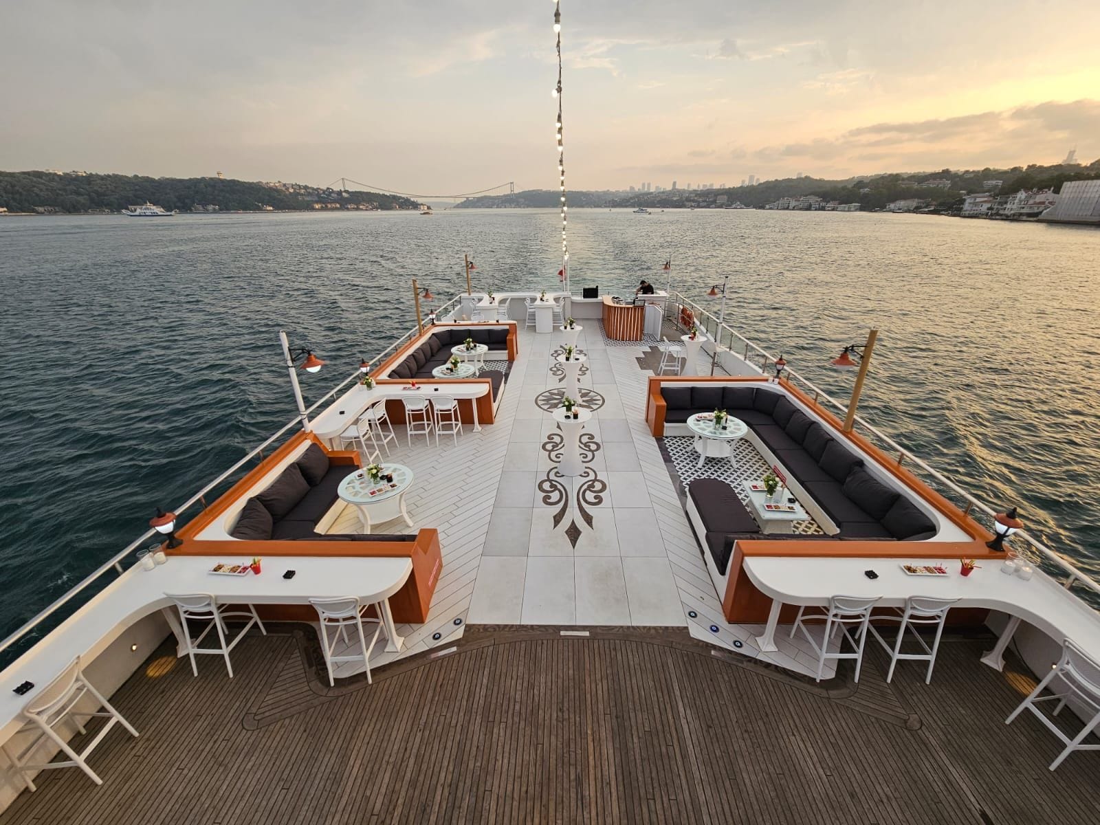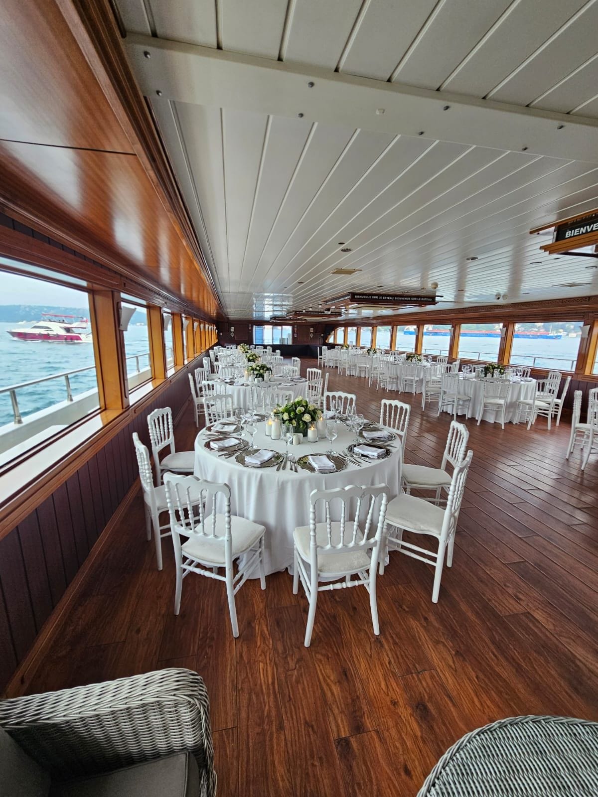 İstanbul Boğazı'nın eşsiz manzarasında kurumsal gala yemeği ve şirket etkinlikleri için tercih edilen bu tekne, kapalı ve açık güverte alanlarıyla her ölçekte organizasyona uyum sağlar. Şirketinizin özel anlarını unutulmaz kılmak için tüm teknik altyapı ve ikram olanakları hazır beklemektedir.