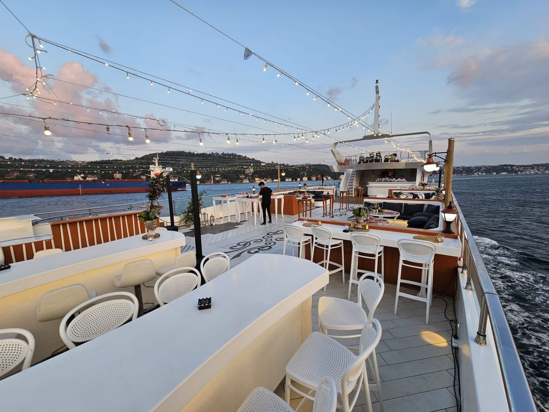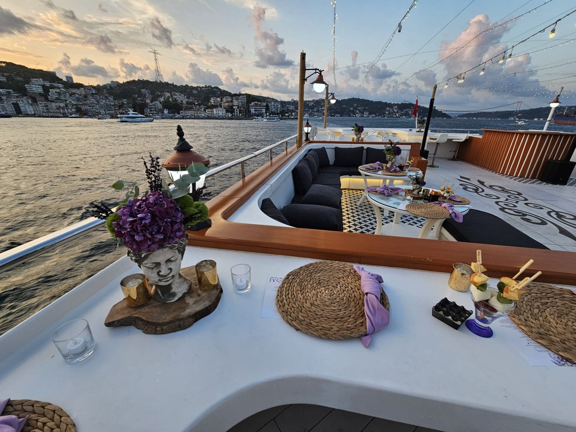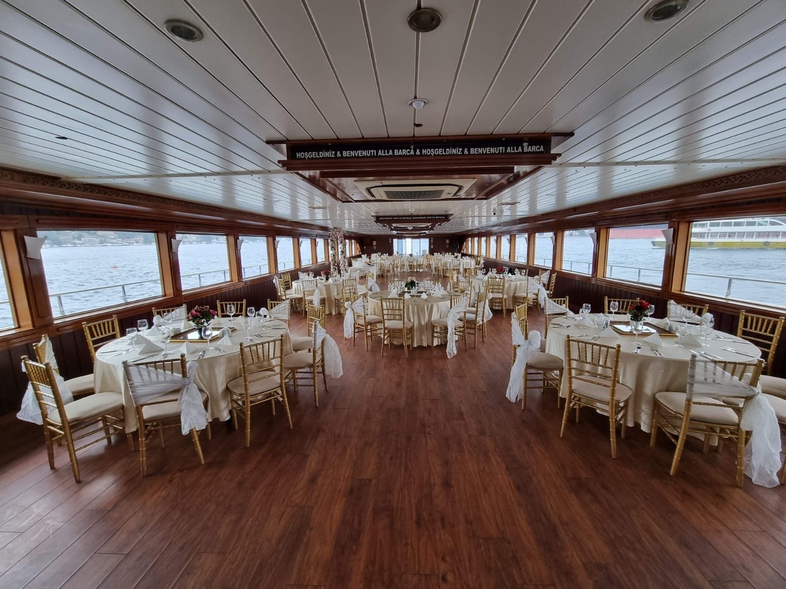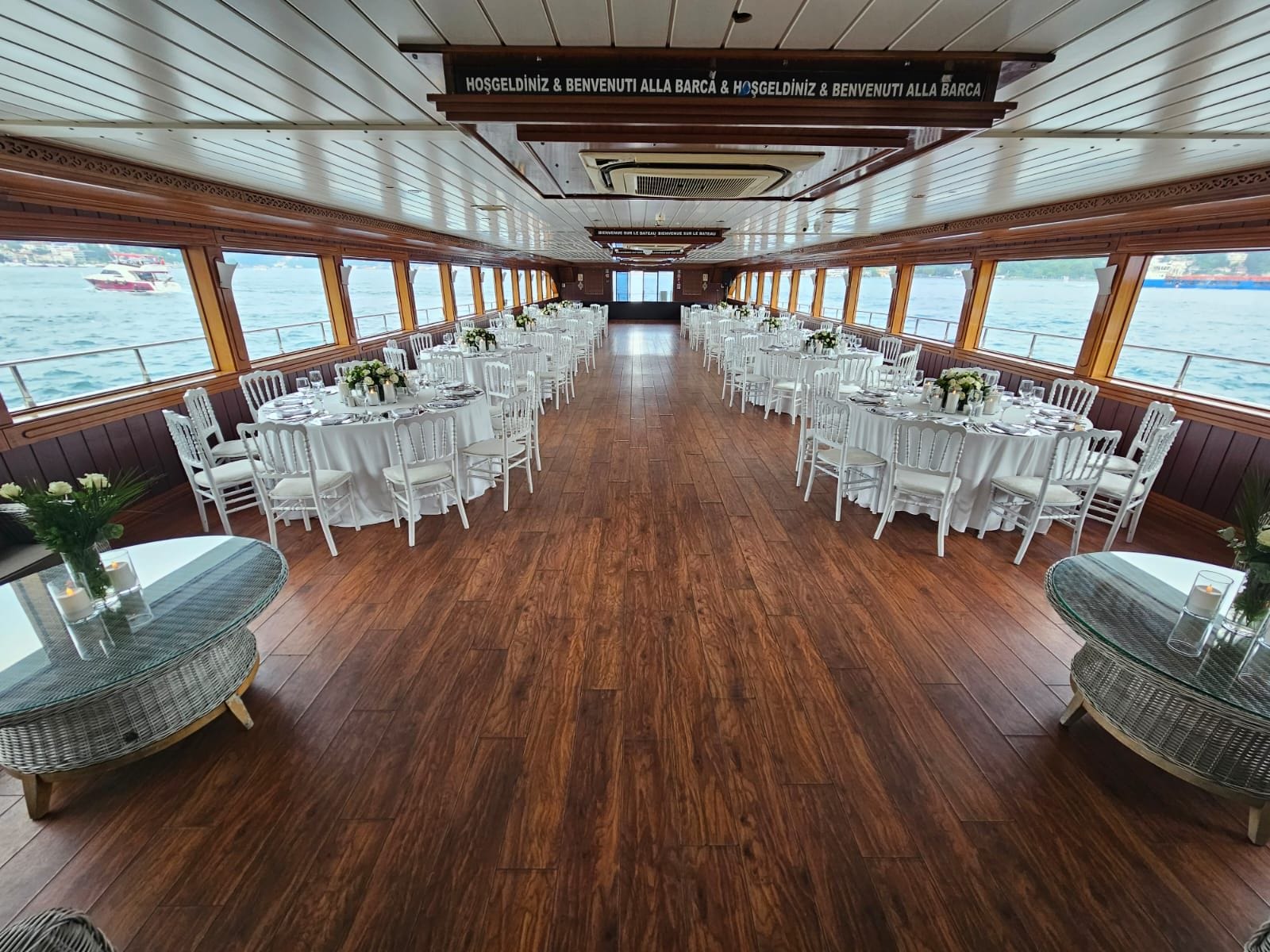 İstanbul Boğazı'nın eşsiz manzarasında kurumsal gala yemeği ve şirket etkinlikleri için tercih edilen bu tekne, kapalı ve açık güverte alanlarıyla her ölçekte organizasyona uyum sağlar. Şirketinizin özel anlarını unutulmaz kılmak için tüm teknik altyapı ve ikram olanakları hazır beklemektedir.