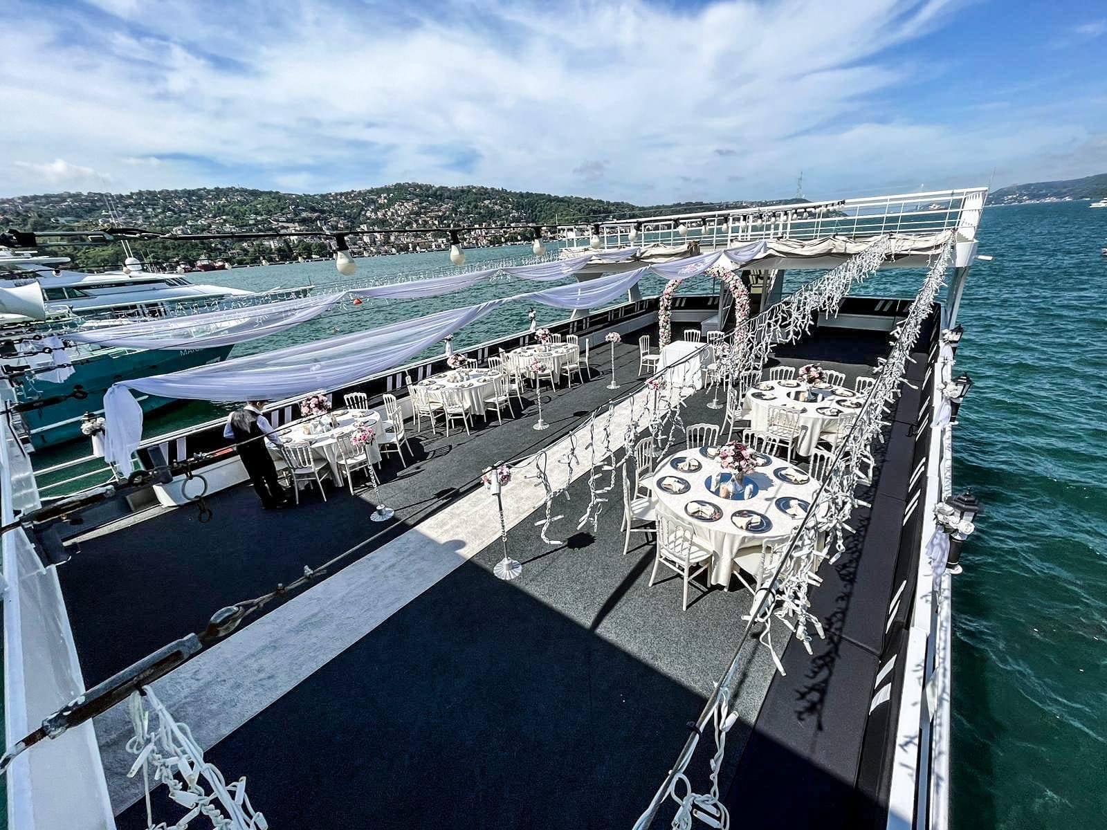 Ürün lansmanları, marka tanıtım etkinlikleri ve müşteri buluşmaları için dinamik bir atmosfer arayan şirketler bu tekneyi tercih eder. Geniş açık güvertesi sahne kurulumuna, kapalı salonu ise sunum ve kokteyl düzenlemelerine elverişlidir. Boğaz'ın canlı manzarası etkinliğinize doğal bir arka plan katarken markanızın prestijini pekiştirir.