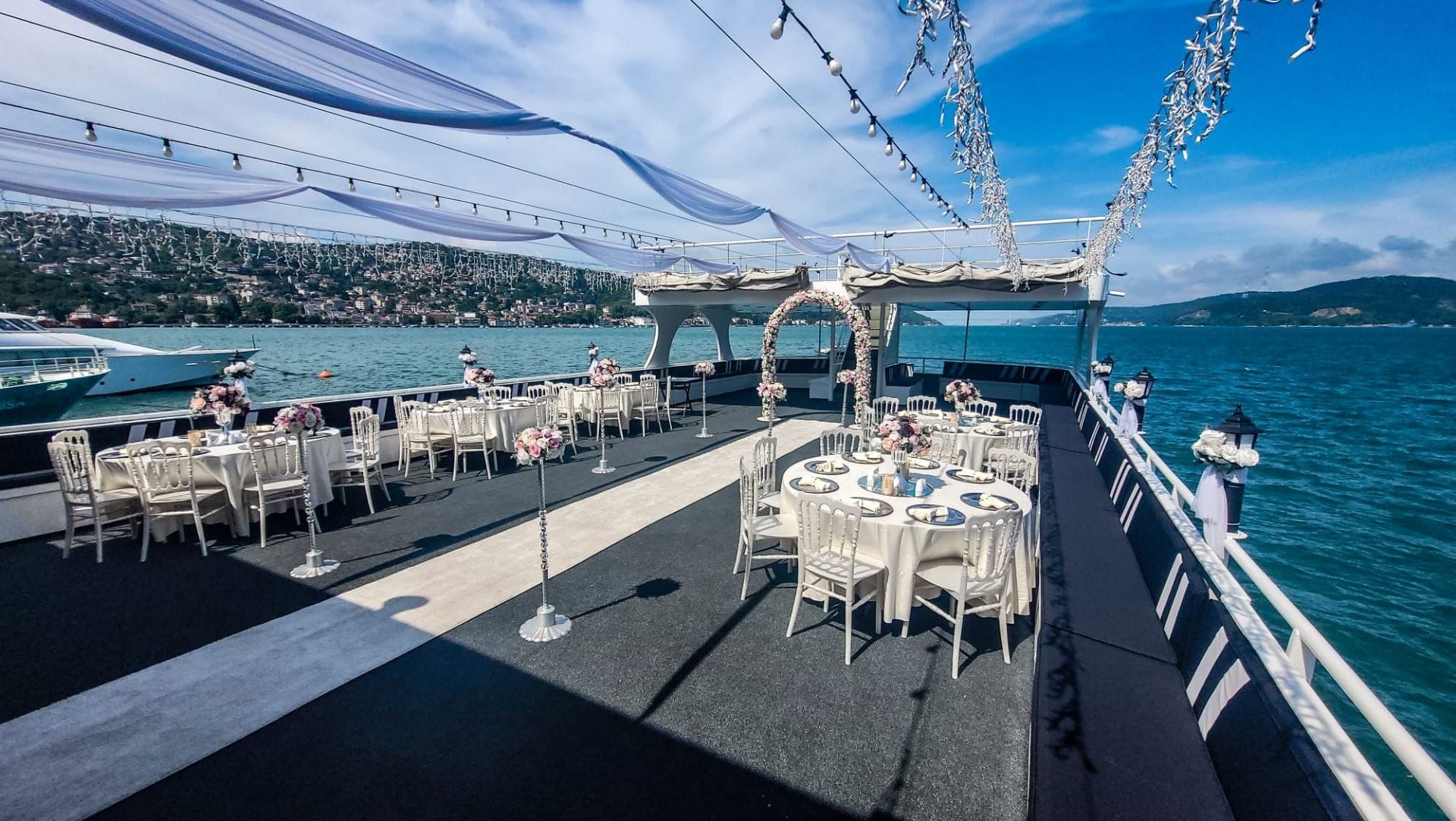- Açık güverte — kokteyl ve seyir alanı