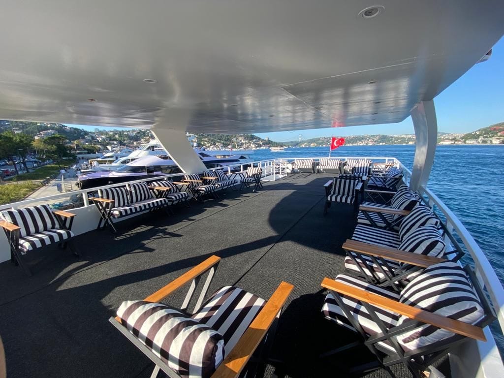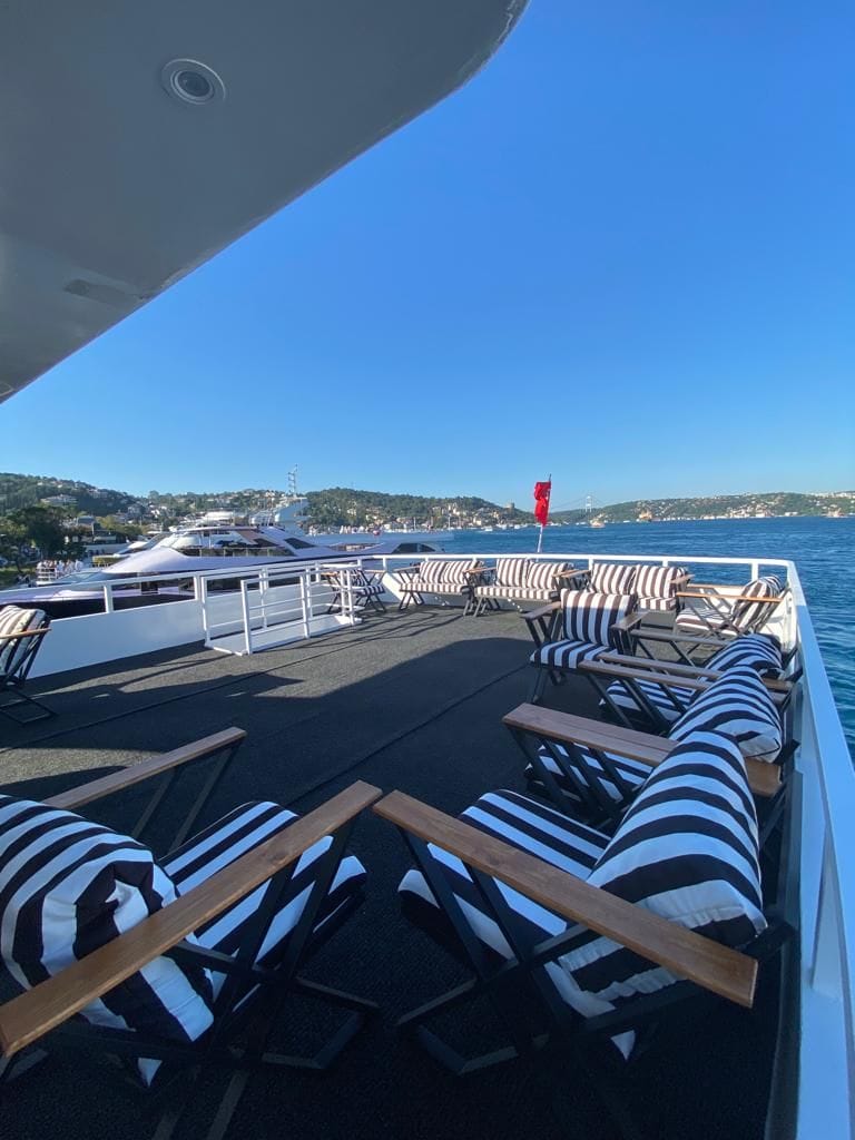 Bu tekneyi şirketinizin özel organizasyonu için rezerve etmek, kapasite ve fiyat bilgisi almak üzere Teknede Şirket Yemeği ekibiyle iletişime geçin. Yıllık deneyimimiz ve kapsamlı tekne filomuzla kurumsal etkinliğinizi İstanbul Boğazı'nda hizmetinize sunmaktan memnuniyet duyarız.