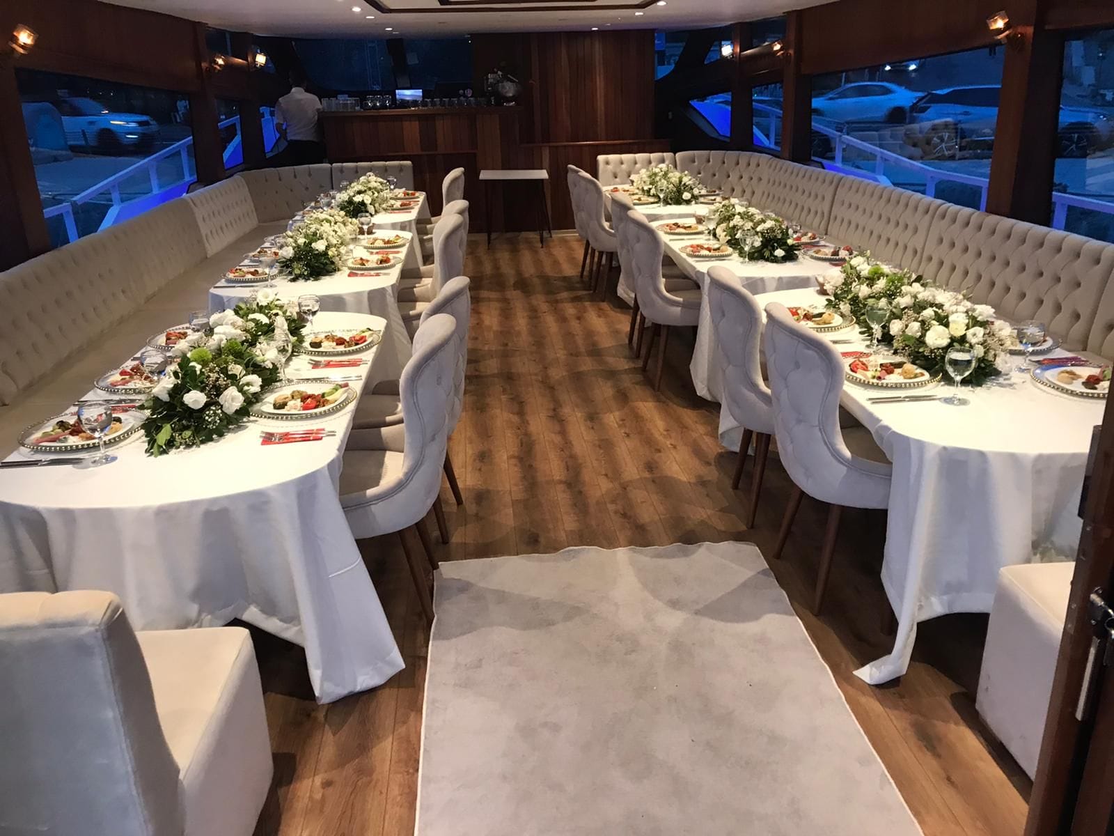 Bölge müdürleri buluşmaları, uluslararası iş ortakları ağırlama davetleri, kurumsal yıldönümü kutlamaları, ürün tanıtım ve basın etkinlikleri için tercih edilen bu tekne, maksimum esneklik ve konfor sağlar. Güverte düzeni katılımcı sayısına ve etkinlik tipine göre önceden planlanabilir.