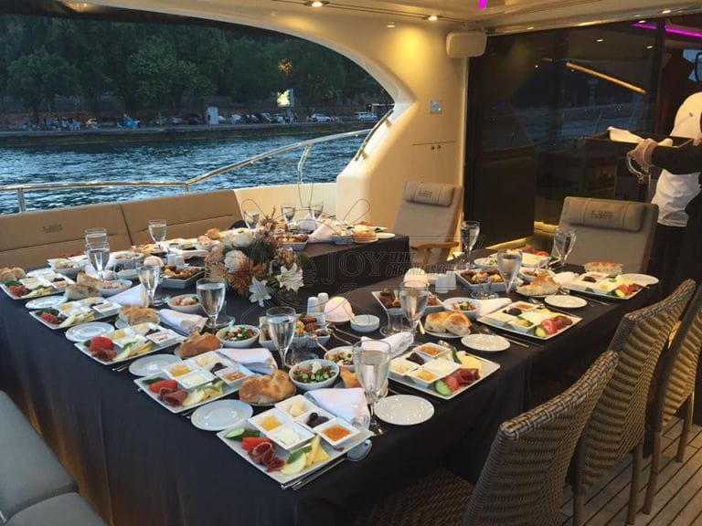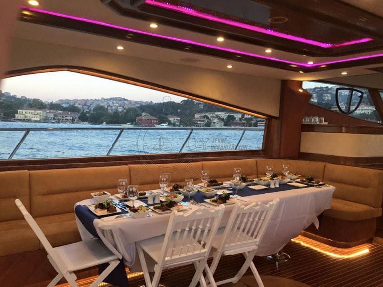 Orta ve büyük ölçekli kurumsal etkinlikler için İstanbul Boğazı'nda kiralık yat arayanlar için ideal bir seçenek olan bu yat, esnek güverte yapısı ve uygun fiyat/değer dengesiyle öne çıkar. Şirket yemekleri, çalışan kutlamaları ve kurumsal kokteyl organizasyonları için tercih edilmektedir.