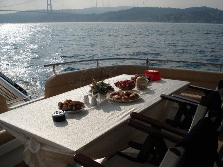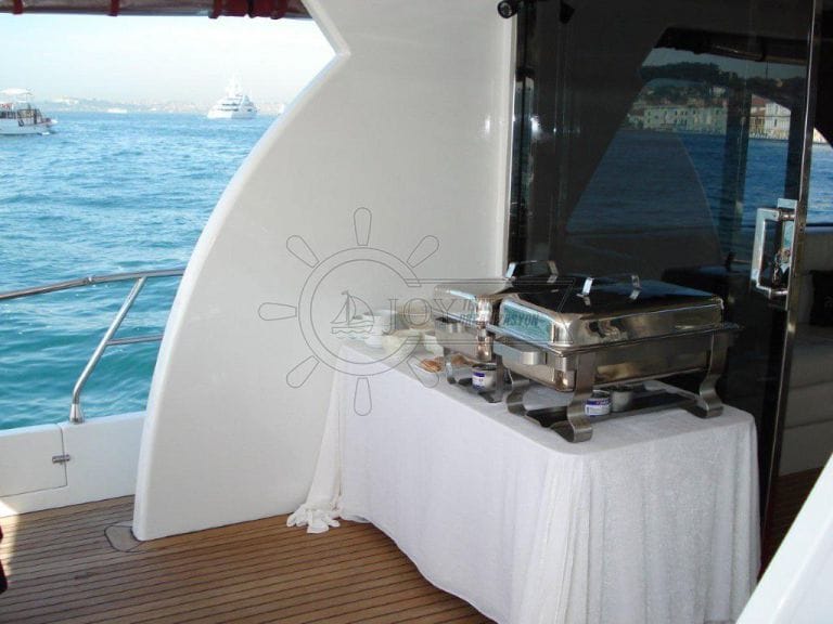 İstanbul Boğazı'nın nefes kesici manzarası eşliğinde çalışanlarınızı veya iş ortaklarınızı ağırlamak için bu yat tercih edilir. Geniş güverte alanı ve kapalı salonu, farklı etkinlik biçimlerine uyum sağlarken misafirlerinize konforlu ve keyifli bir deneyim sunar.