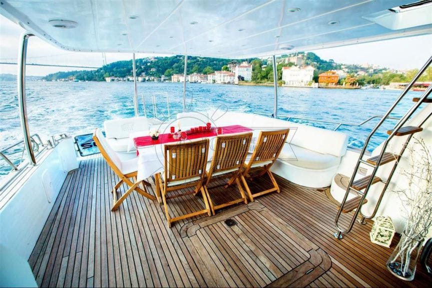 Orta ve büyük ölçekli kurumsal etkinlikler için İstanbul Boğazı'nda kiralık yat arayanlar için ideal bir seçenek olan bu yat, esnek güverte yapısı ve uygun fiyat/değer dengesiyle öne çıkar. Şirket yemekleri, çalışan kutlamaları ve kurumsal kokteyl organizasyonları için tercih edilmektedir.